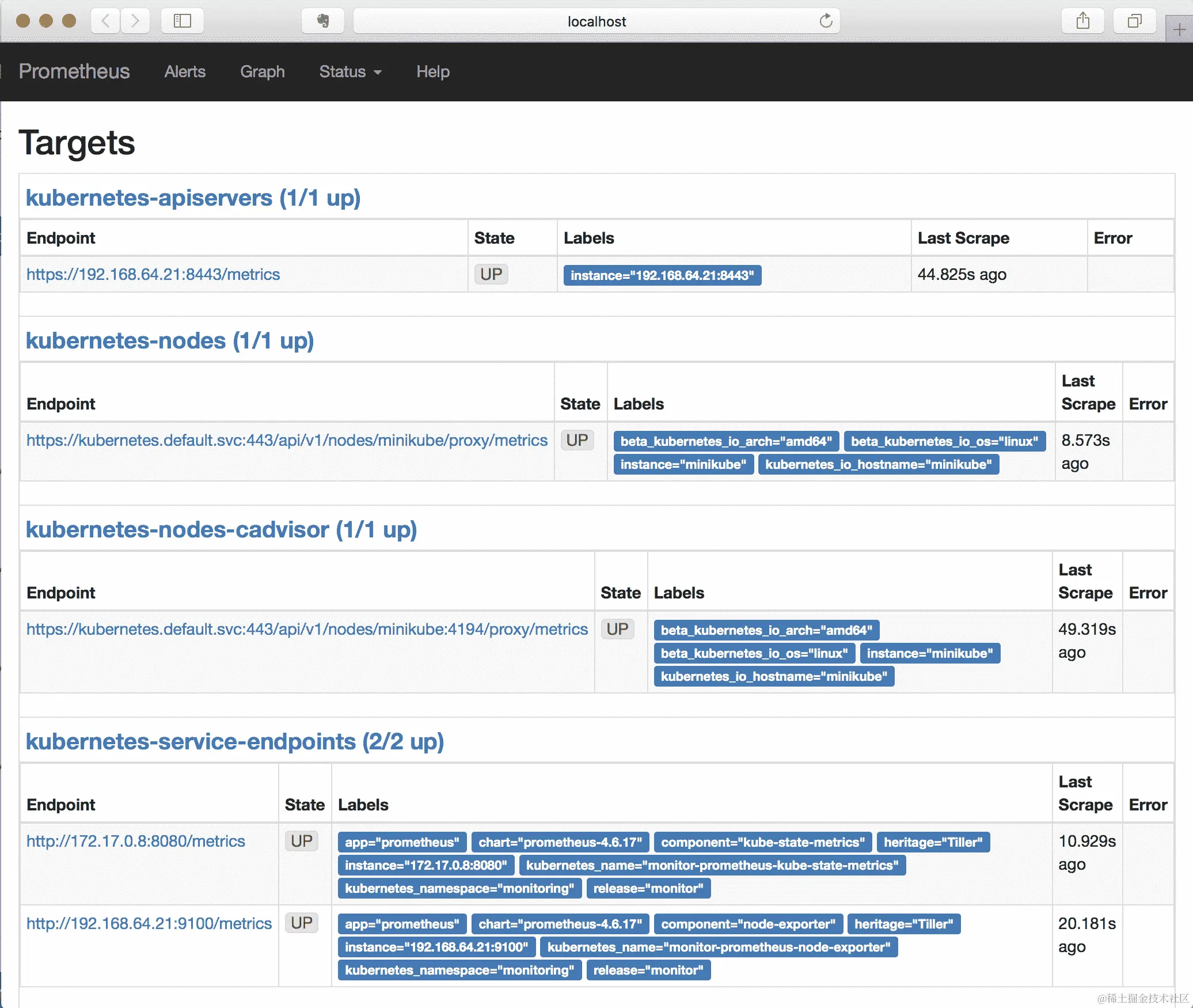 Kubernetes 还通过其自己的 API 提供有关自身(其 API 服务器和相关组件)的指标。在通过kubectl代理使 API 可用后,您可以使用curl命令直接查看这些指标: