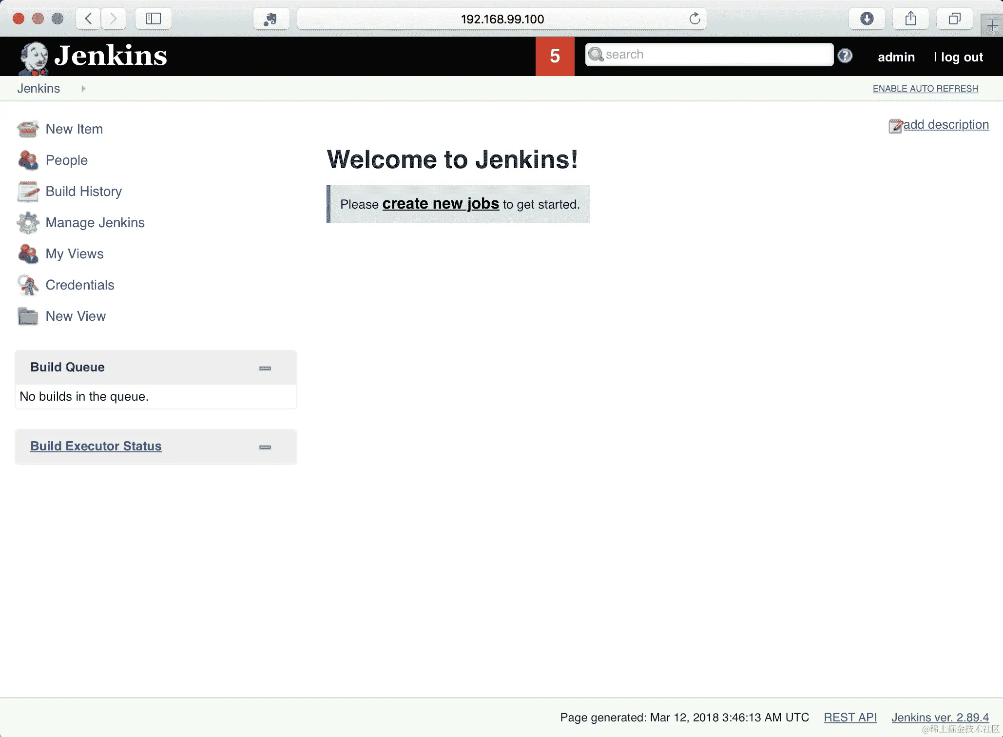 然后,登录应该为您提供对 Jenkins 的管理访问权限: