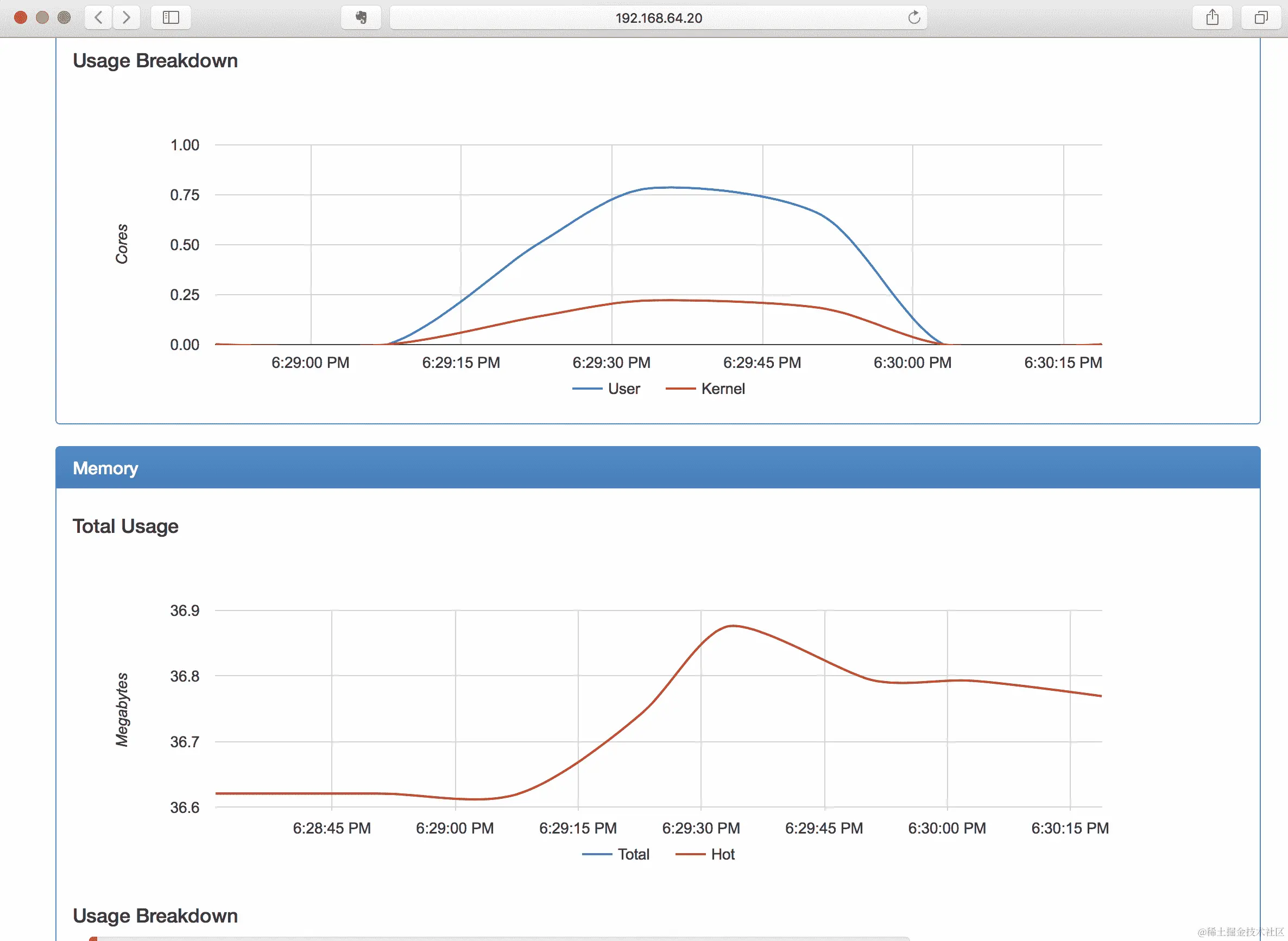 获取运行单节点 Kubernetes 集群的开发机器上虚拟机的 IP 地址,可以访问运行的 cAdvisor,然后在浏览器中导航到该 IP 地址的4194端口。例如,在运行 Minikube 的 macOS 上,您可以使用以下命令: