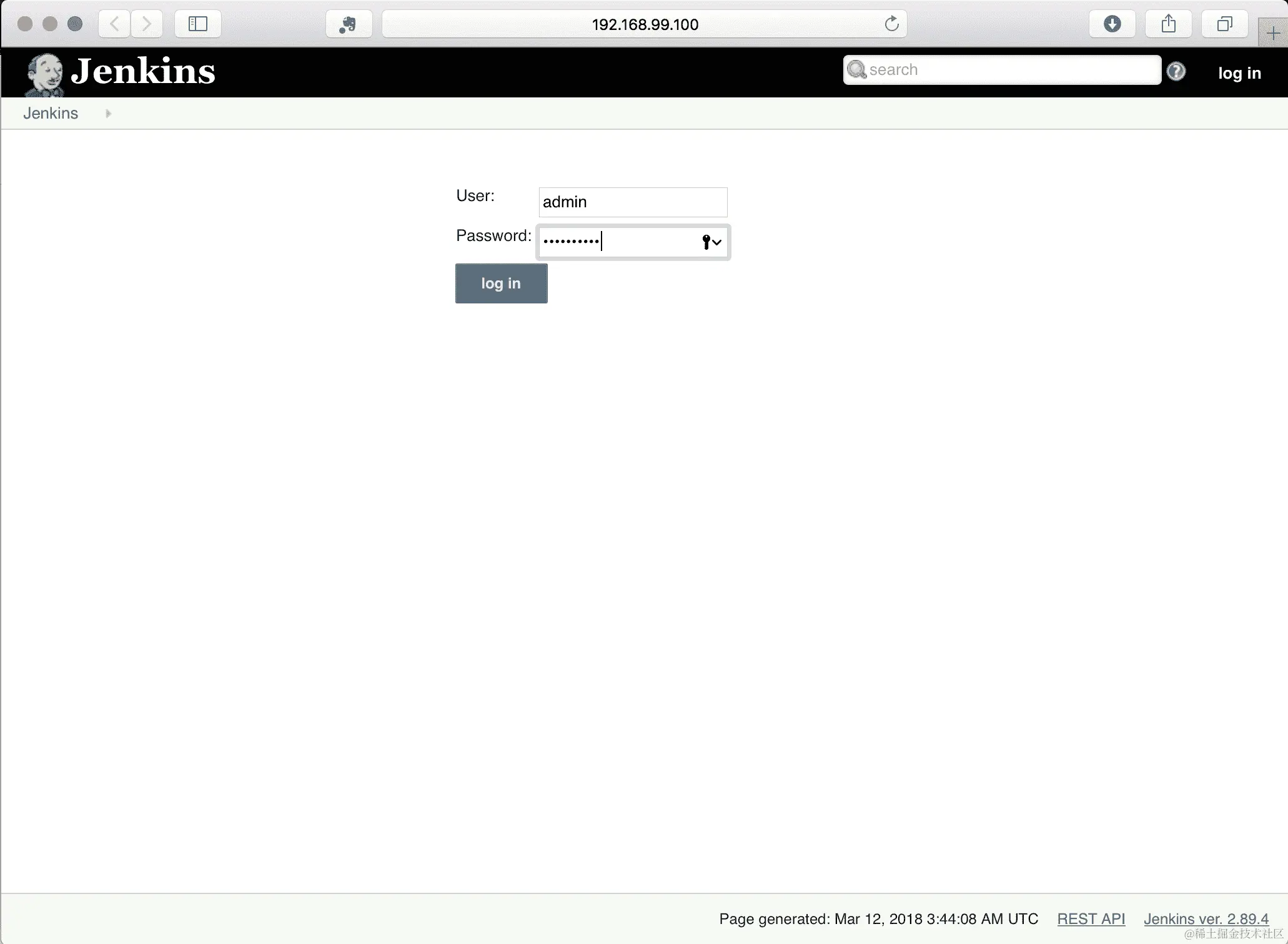 第一页将为您提供凭据请求。使用admin作为用户名和您在前面命令中读取的密码: