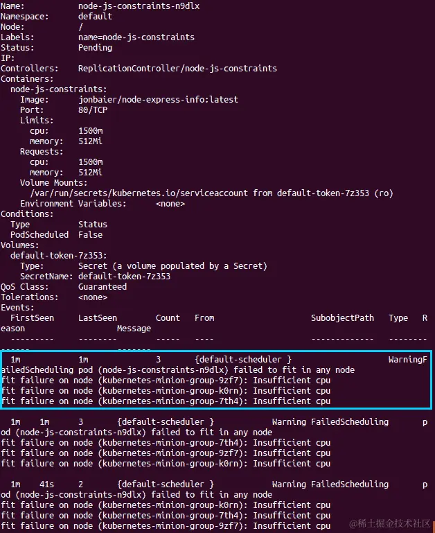 如您在前面的图像中所见,前三个 pod 已成功创建,但我们的最后一个失败了,出现了Limited to 3 pods错误。