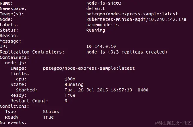 但是,如果你尝试,你会受挫于从服务器收到的not found消息。这是因为我们在一个新的命名空间创建了这个 RC,如果没有指定,kubectl会假定默认命名空间。这意味着我们在访问test命名空间中的资源时需要在每个命令中指定--namepsace=test。