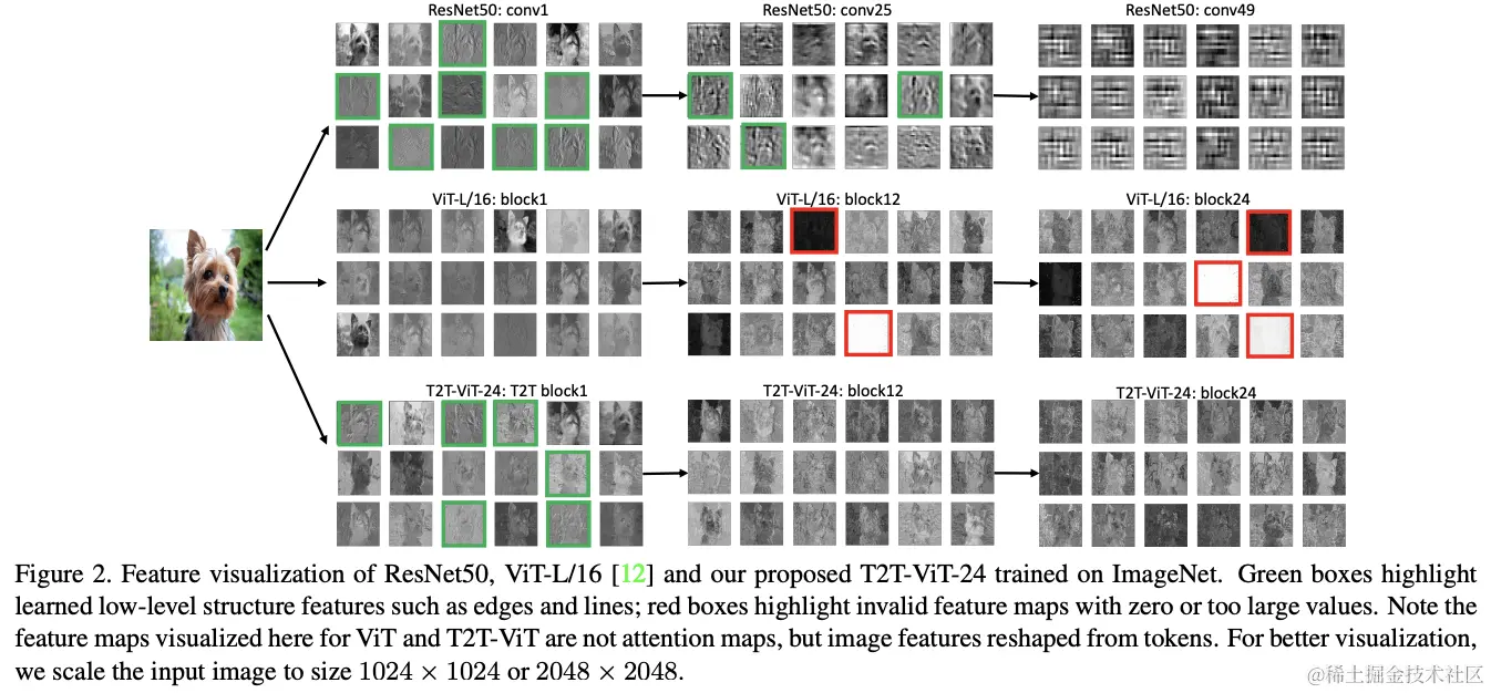 论文提出了T2T-ViT模型,引入tokens-to-token(T2T)模块有效地融合图像的结构信息,同时借鉴CNN结果设计了deep-narrow的ViT主干网络,增强特征的丰富性。在ImageNet上从零训练时,T2T-ViT取得了优于ResNets的性能MobileNets性能相当。