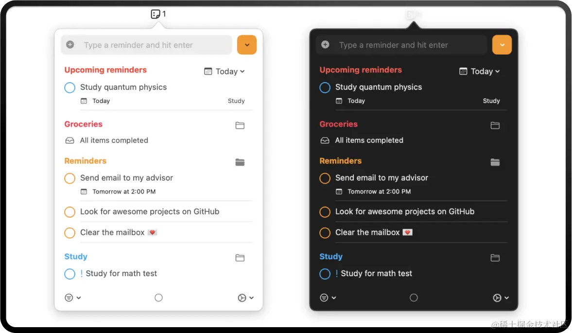 这是一个开源的 macOS 菜单栏应用程序,功能很简单,用于查看和操作提醒事项。它可以与Apple提醒事项同步,可以创建新的提醒事项,设置提醒事项的到期日期,标记提醒事项的完成状态,编辑、删除或移动提醒事项,查看即将到来的提醒事项等。安装方法有通过Homebrew安装和直接下载安装。