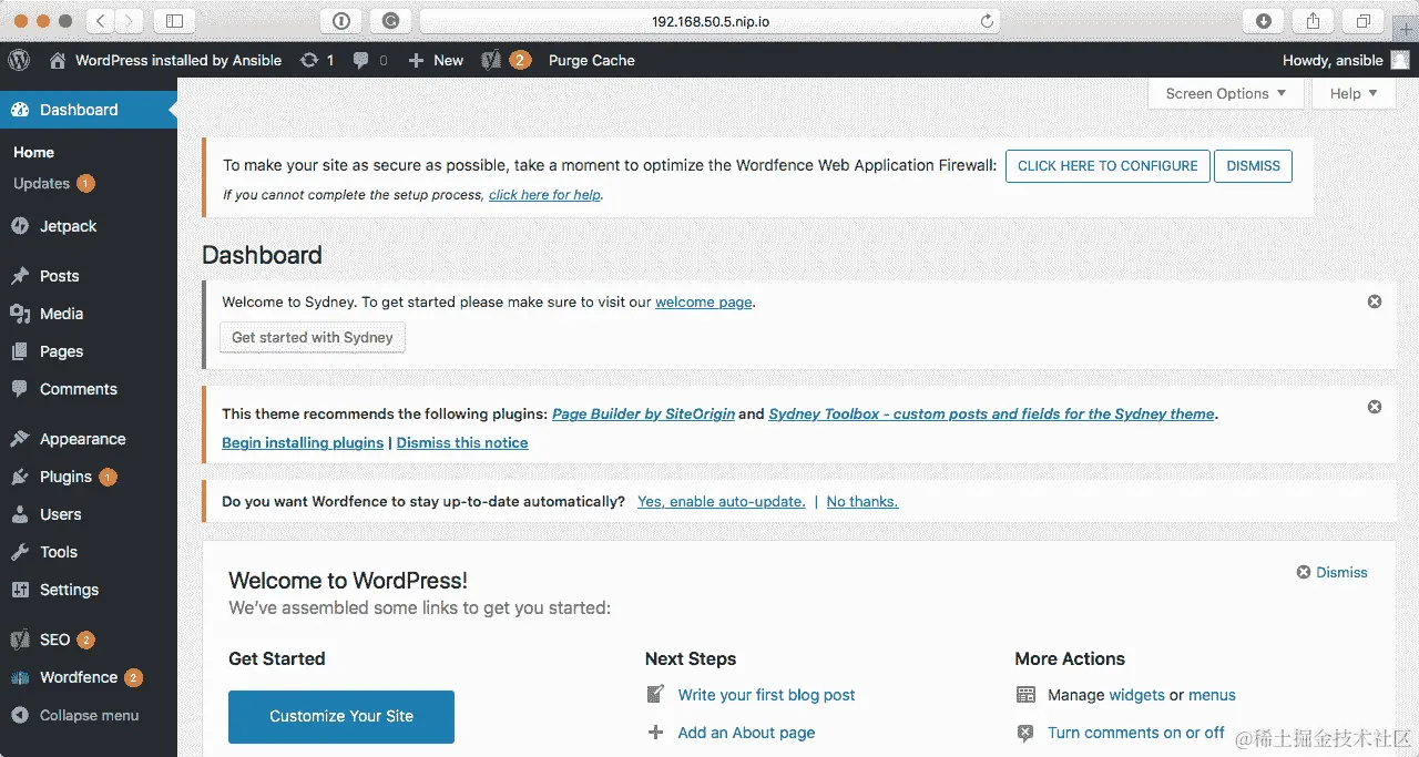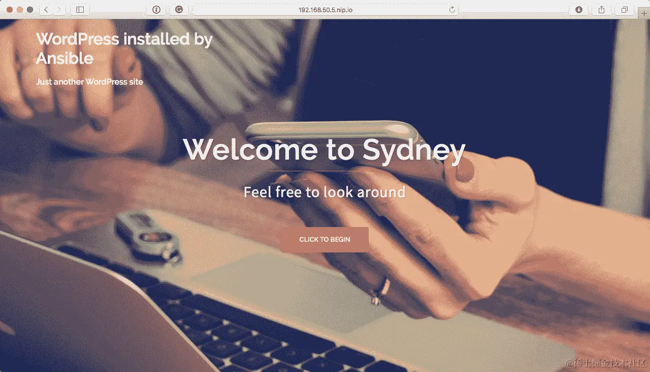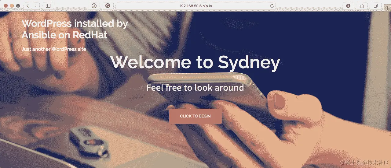 一旦 playbook 完成,您应该能够在浏览器中访问http://192.168.50.6.nip.io/,并且您应该看到 WordPress 显示已安装在基于 Red Hat 的操作系统上: