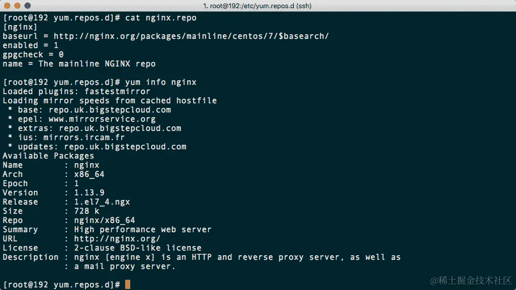 接下来的任务是在/etc/yum.repos.d/中创建一个名为nginx.repo的存储库文件: