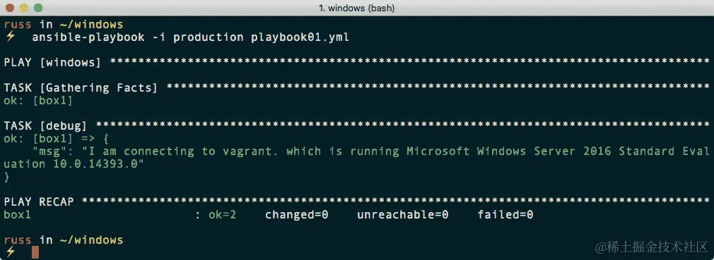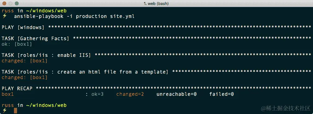 playbook 运行的略有编辑的输出如下: