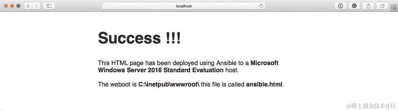 如您所见,我们使用 WinRM 连接器使用管理员用户名和在启动实例时运行用户数据脚本时设置的密码连接到我们的 Windows 实例。site.yml文件应该有以下内容: