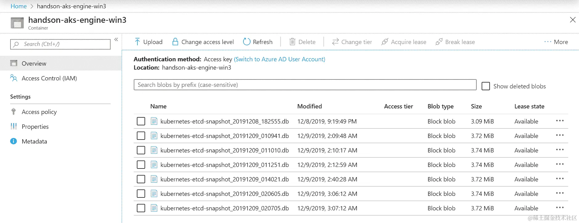 备份准备就绪,让我们看看如何将文件上传到 Azure blob 存储。请注意,不应直接在生产主节点上执行这些操作,特别是在快速安装 Azure CLI 时。我们演示这一点是为了之后创建一个 Kubernetes CronJob,它将运行一个 Docker 容器来执行这些操作。请按照以下步骤操作您的开发集群。