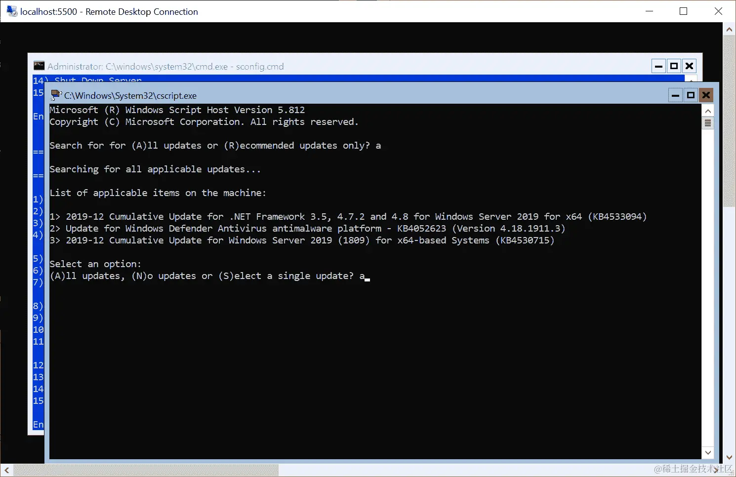 10.240.0.4是 Windows 节点的私有 IP,创建一个 SSH 连接到主节点,将 RDP 端口转发到 Windows 节点,使用ssh -L 5500:10.240.0.4:3389 azureuser@<dnsPrefix>.<azureLocation>.cloudapp.azure.com命令。在一个新的命令行窗口中,使用mstsc /v:localhost:5500命令启动一个 RDP 会话。