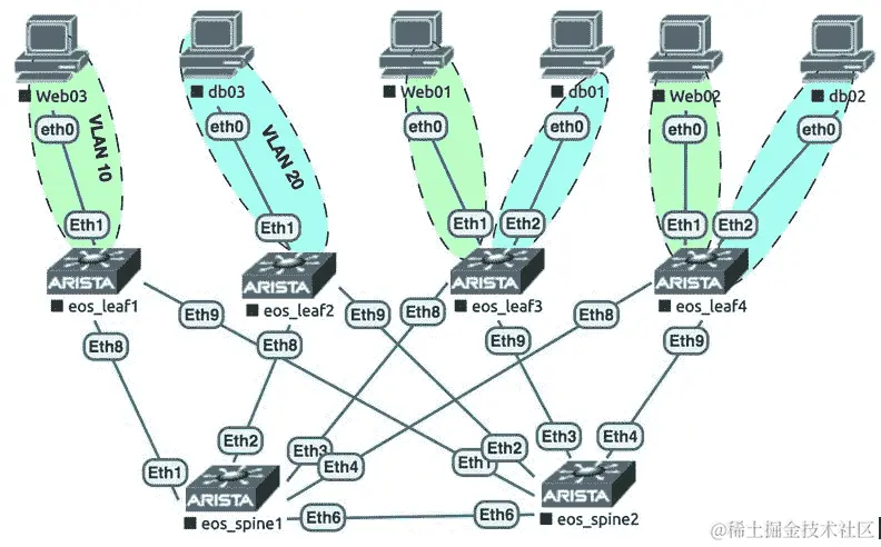 在 Arista 设备上必须启用 eAPI,以便在这个配方中使用 Ansible 模块。