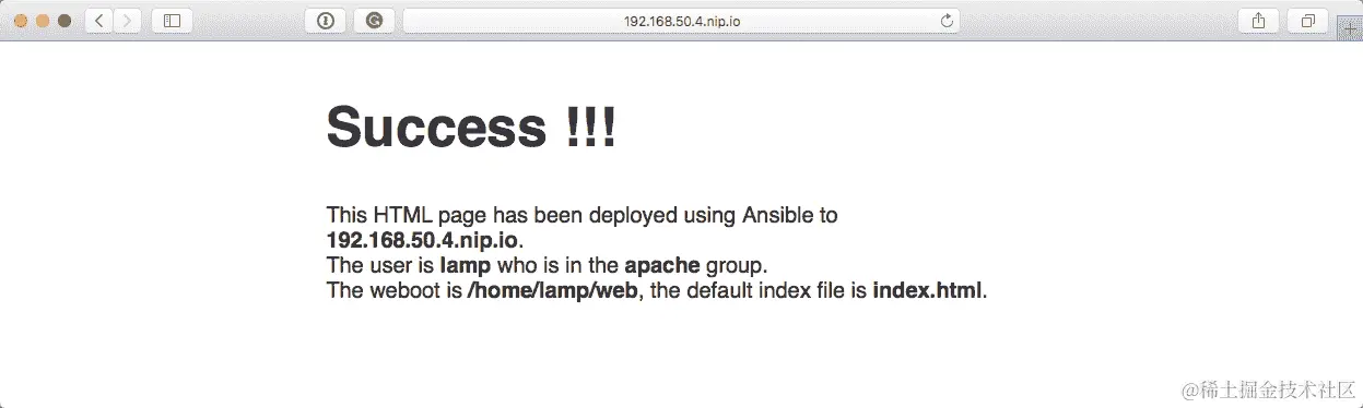 然后重新运行 playbook。一旦 playbook 完成,打开http://192.168.50.4.nip.io/将显示以下页面: