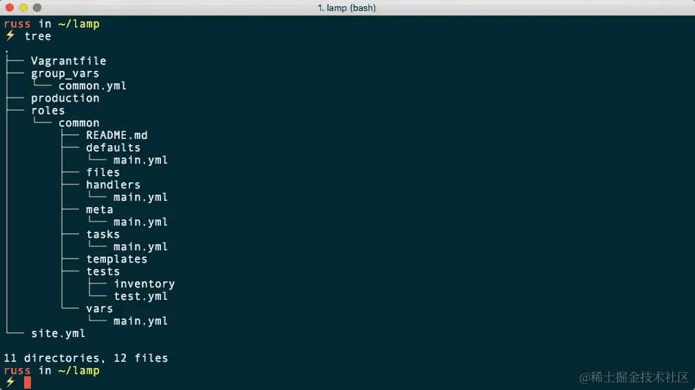 现在我们的 LAMP 堆栈的最后一个元素的角色已经完成,我们可以将其添加到我们的 playbook 中。现在它应该看起来像下面这样: