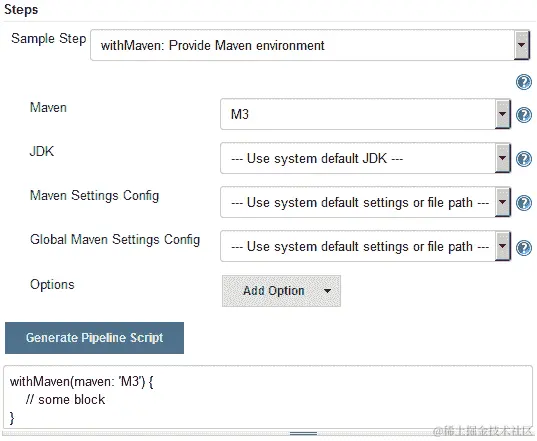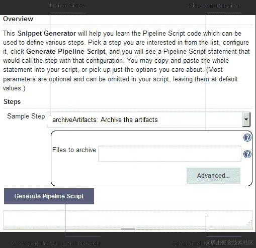 现在让我们在脚本字段内编写一些代码,看看管道是如何工作的。我们将尝试一些 Jenkins 提供的示例代码。
