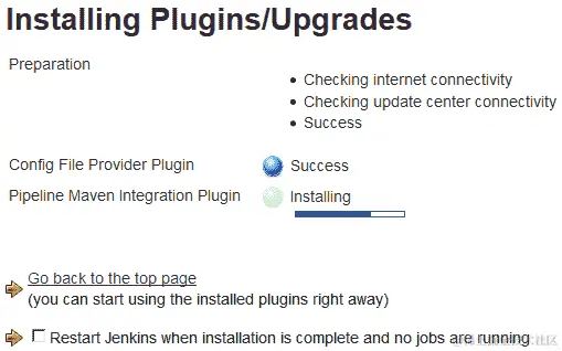 确保您的 Jenkins 服务器可以访问互联网。这是下载和安装插件所必需的。