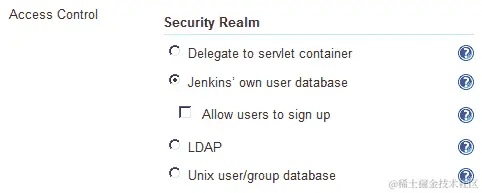 该选项仅在您从 servlet 容器(如 Apache Tomcat 等)运行 Jenkins 服务器时才能使用。启用此选项将允许 Jenkins 使用 servlet 容器的领域对用户进行身份验证。