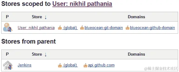 凭据链接将带您进入凭据页面。但是,凭据页面将显示与当前用户相关的其他信息,如下图所示: