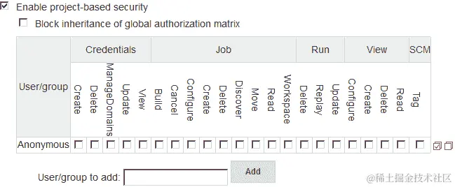 但是,想象一种情况,你的 Jenkins 服务器已经发展到包含数百个 Jenkins 作业和许多用户的阶段,并且你希望在作业级别(项目级别)上控制用户权限。