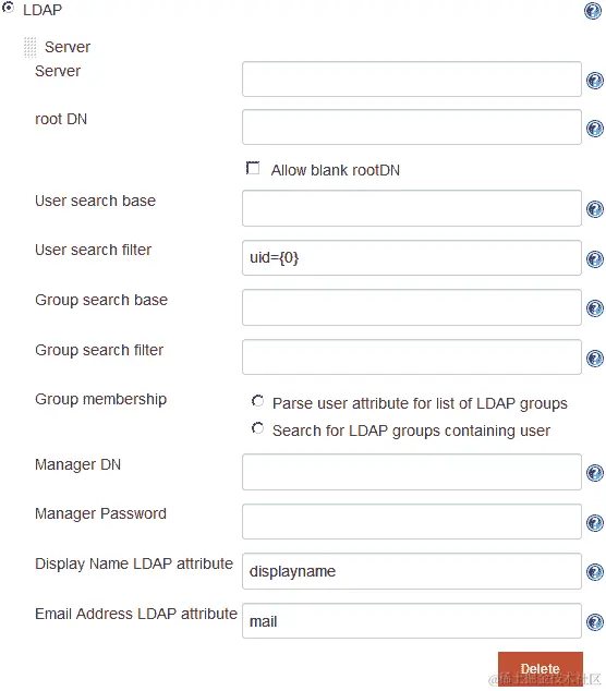 这是大多数组织中最广泛使用的身份验证方法之一。如果在访问控制 | 安全领域部分下未看到LDAP选项,请检查LDAP 插件。
