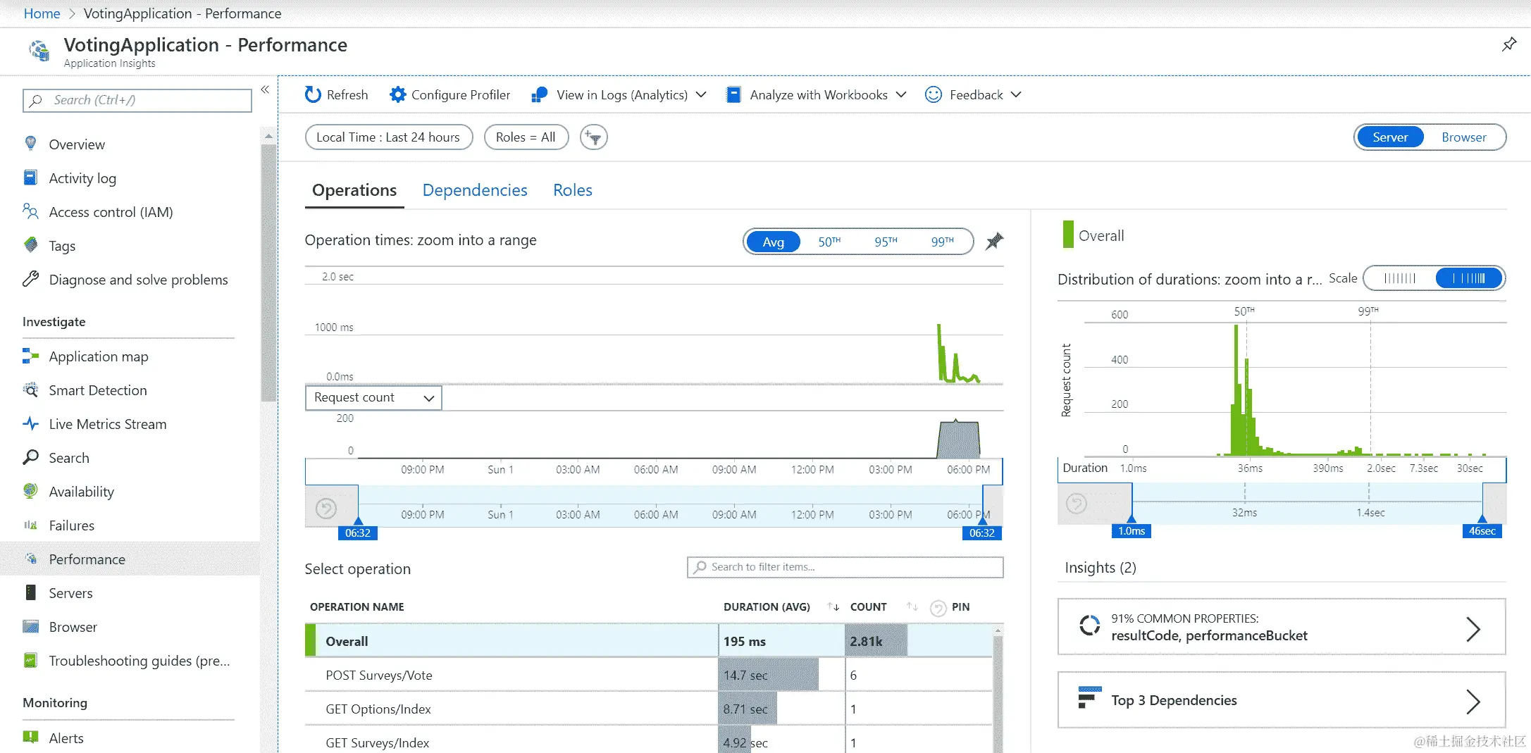 您可以清楚地看到在每分钟约 300 次请求的压力测试期间,此操作的执行情况。