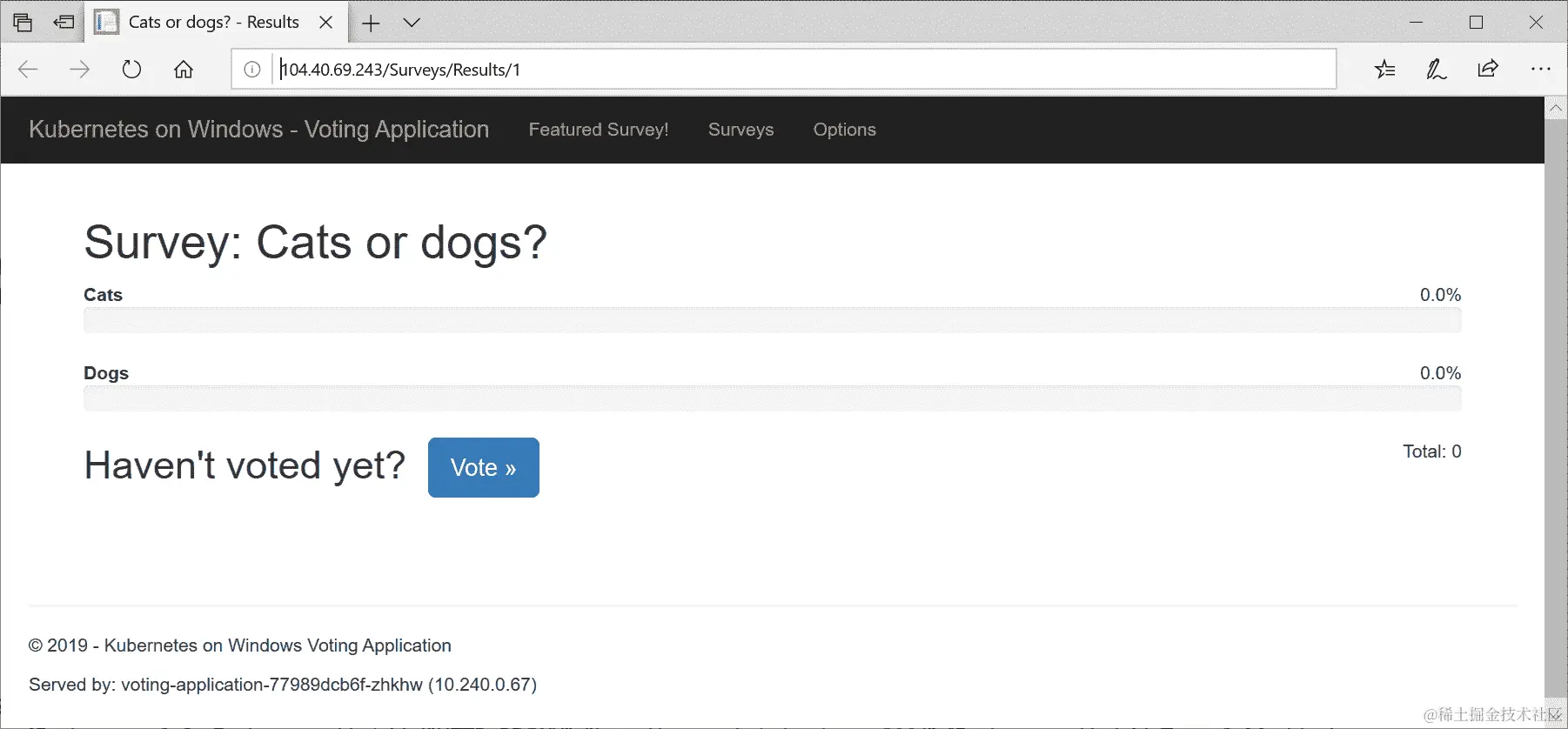 打开投票应用的 Web UI,并在几分钟内添加一些投票。