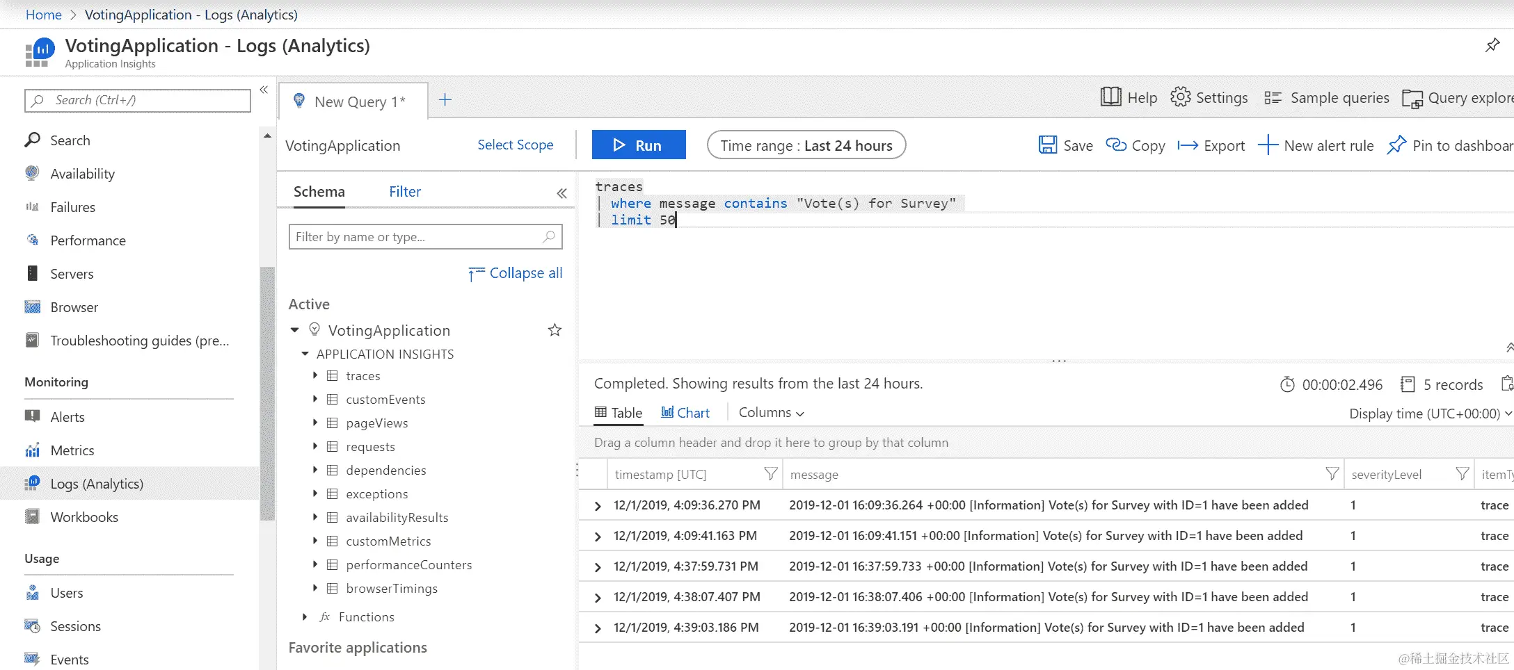 我们的解决方案有效!通过这种方式,您可以导出您在应用程序代码中定义的任何指标,并创建更复杂的查询,用于监视和分析目的。
