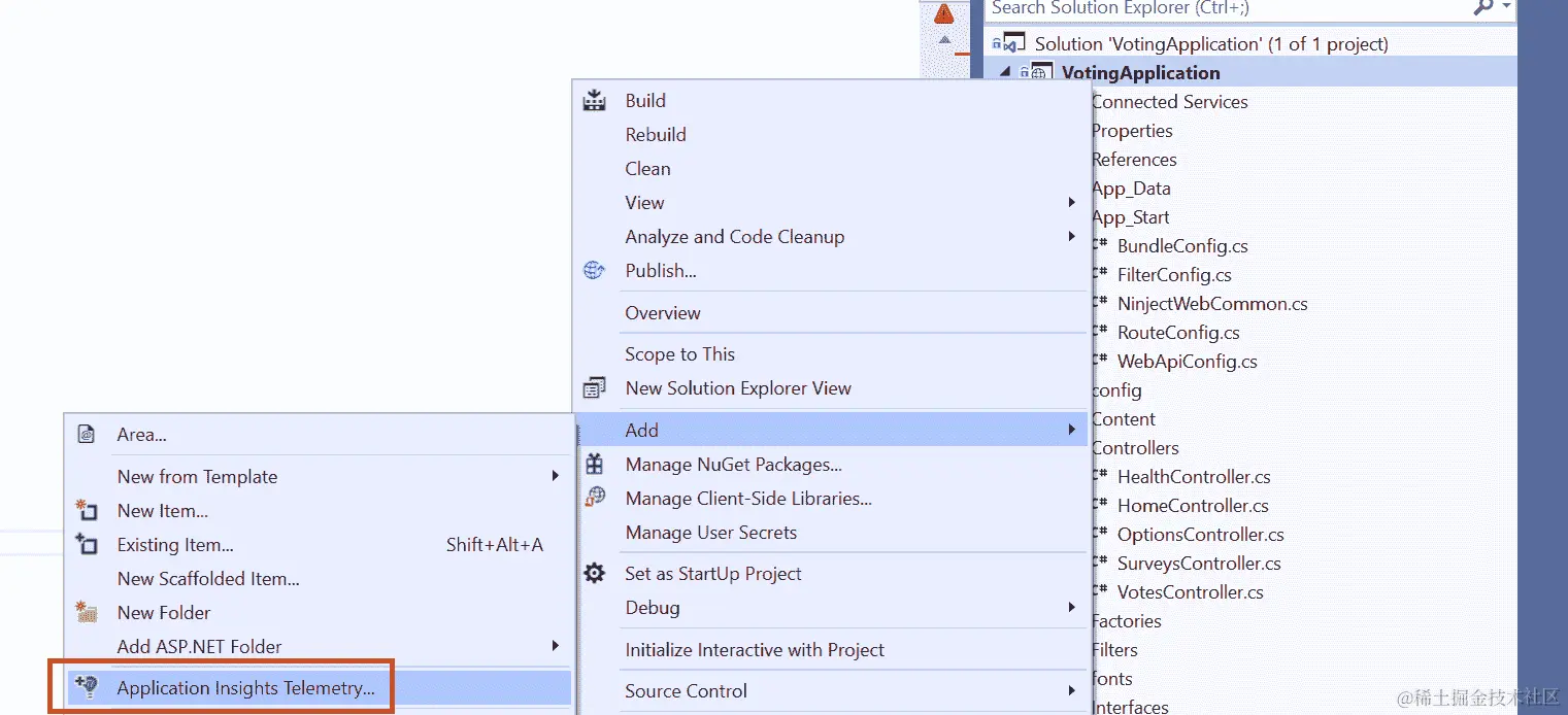 在解决方案资源管理器中右键单击项目。