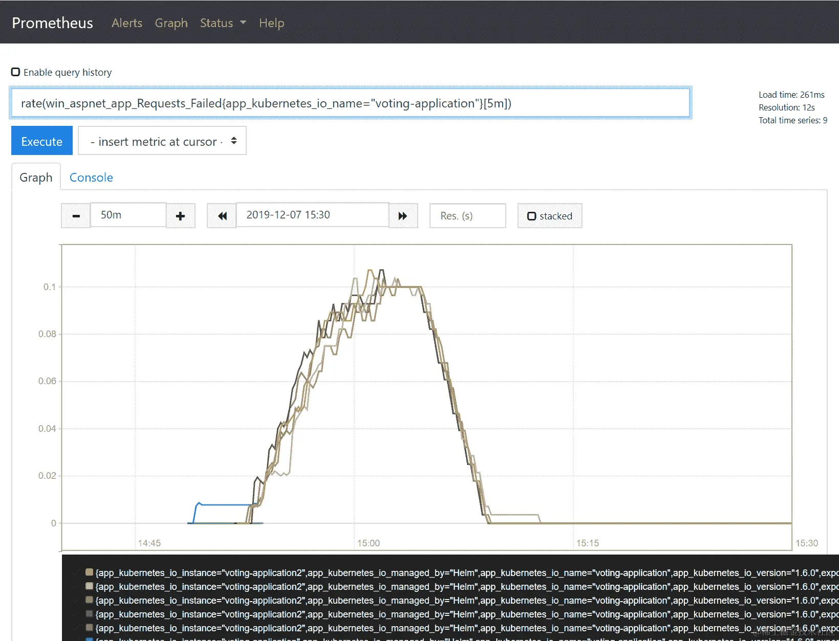 sum((rate(win_aspnet_app_Requests_Total[5m]))) by (app_kubernetes_io_instance)。此查询计算了每个 Pod 的 5 分钟间隔内请求的每秒速率,并通过 Kubernetes 应用程序全局汇总。 -