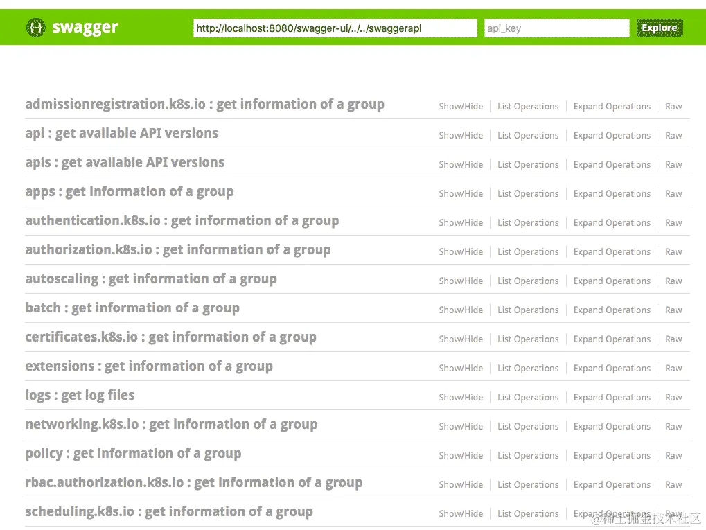 Kubernetes API 的 swagger web 控制台