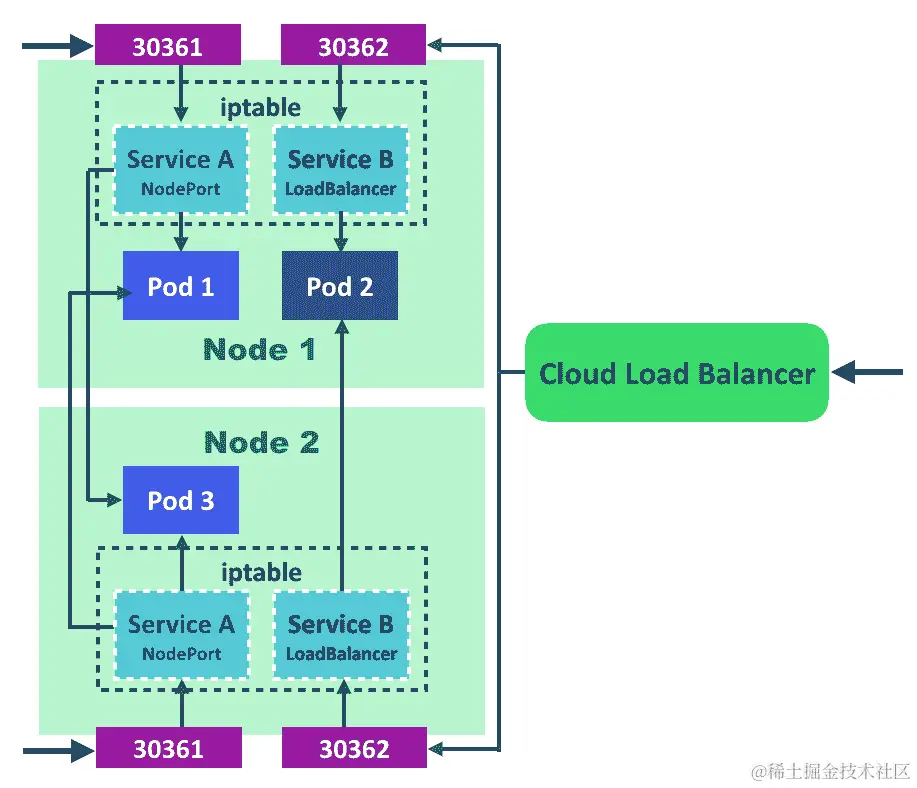 NodePort将绑定到所有 Kubernetes 节点(端口范围:30000到32767);因此,请确保NodePort没有被其他进程使用。