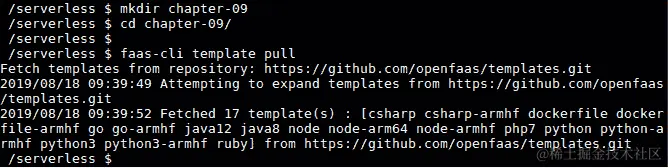 wsk命令调用 OpenWhisk。执行以下命令以验证安装: