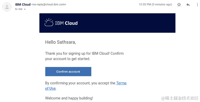 图 8.4:IBM Cloud 激活邮件