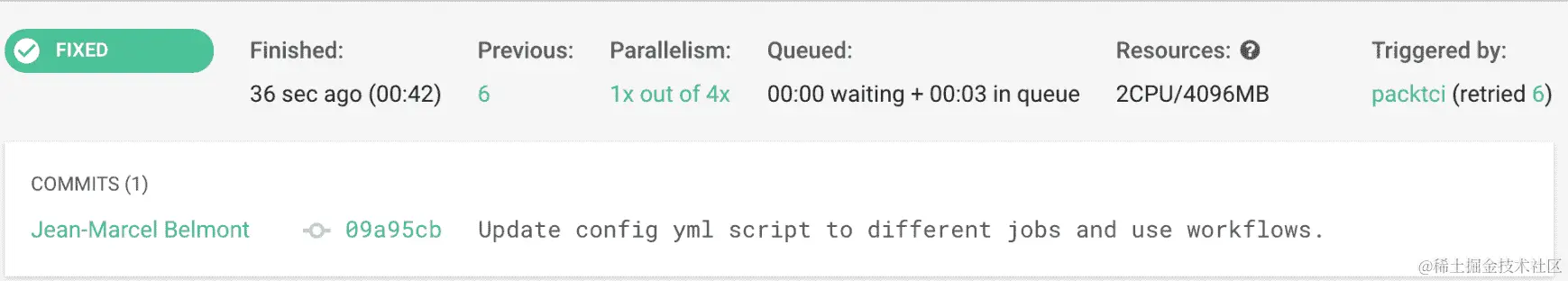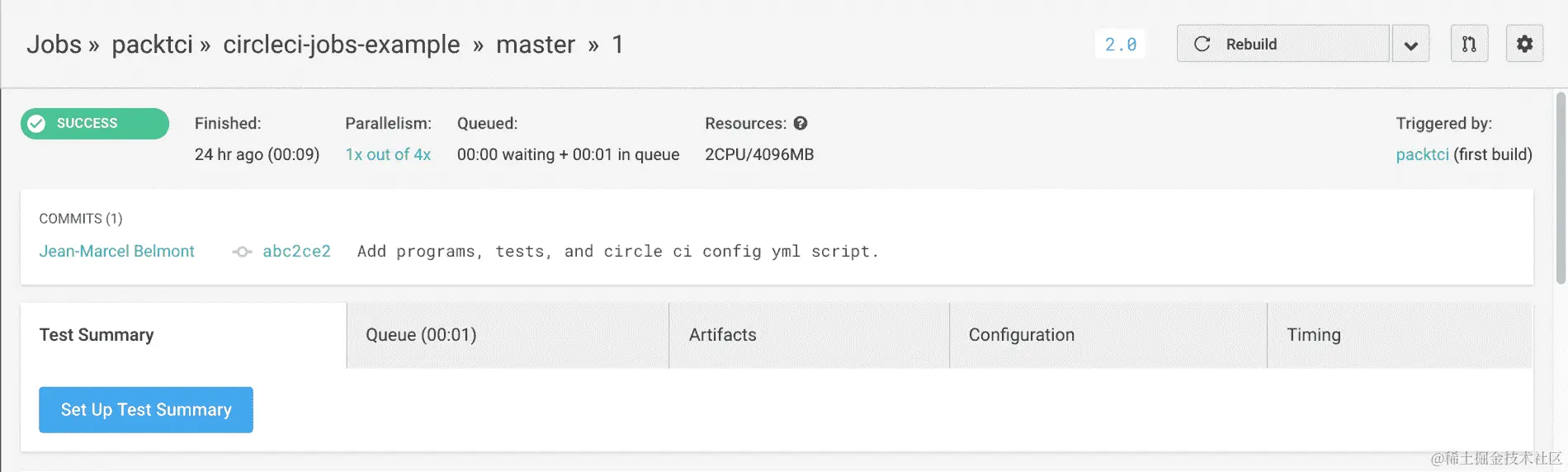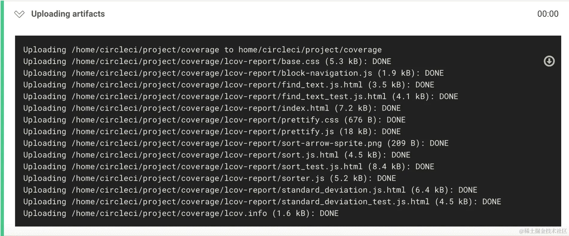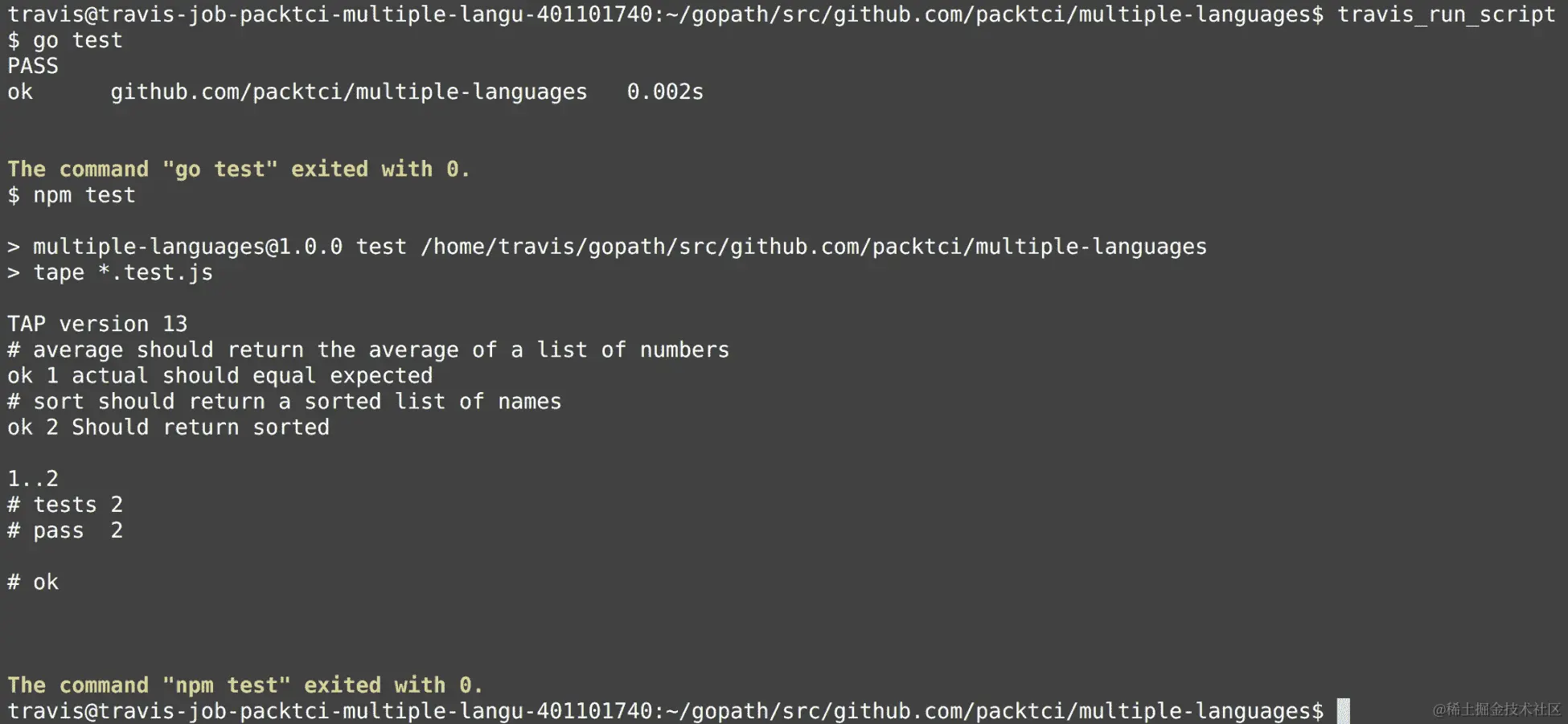 如果您返回 Travis web UI 并查看当前作业日志,您将看到以下内容: