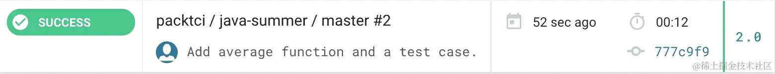 请注意,Travis CI 为我们推送的名为add-test-case的新分支创建了一个新的构建: