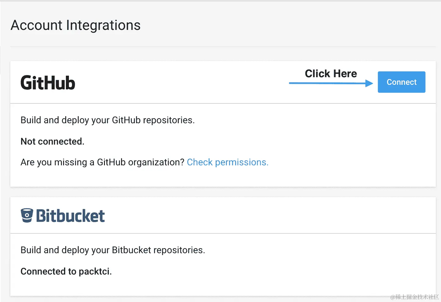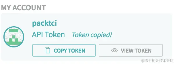 您需要访问一个 URL,例如 travis-ci.org/profile/packtci。然后您需要在个人资料页面中复制您的 API 令牌,如下所示: