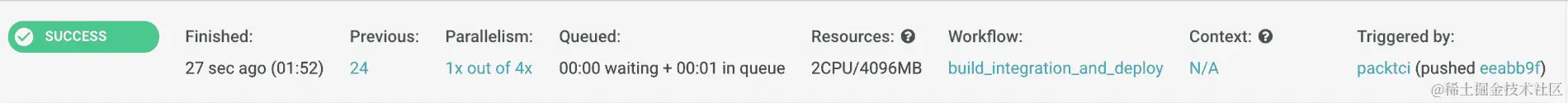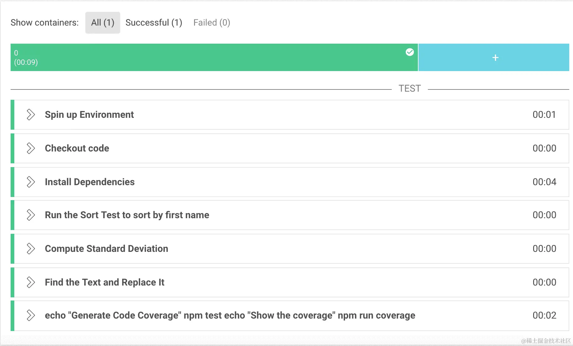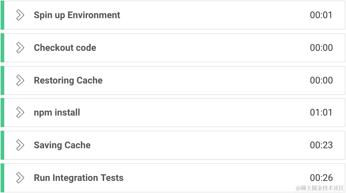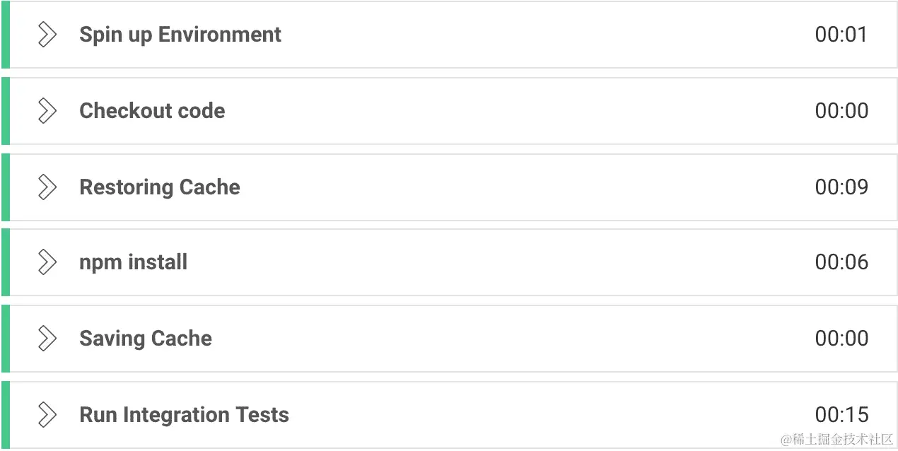 任何其他生命周期事件,如after_success和after_script生命周期事件,都将有一个构建标签和一个时间戳。