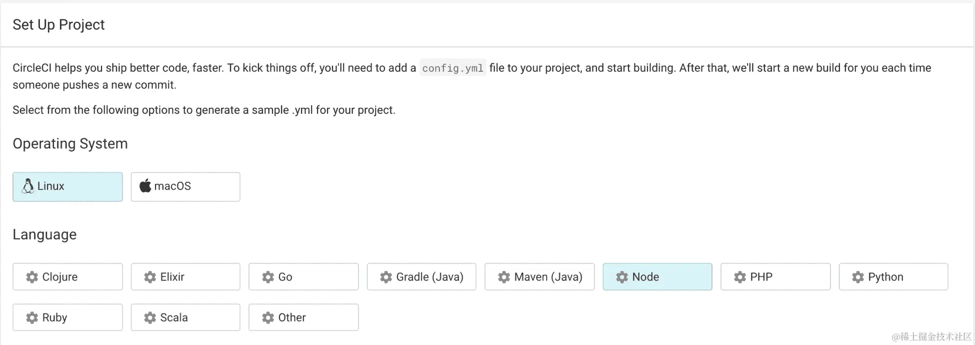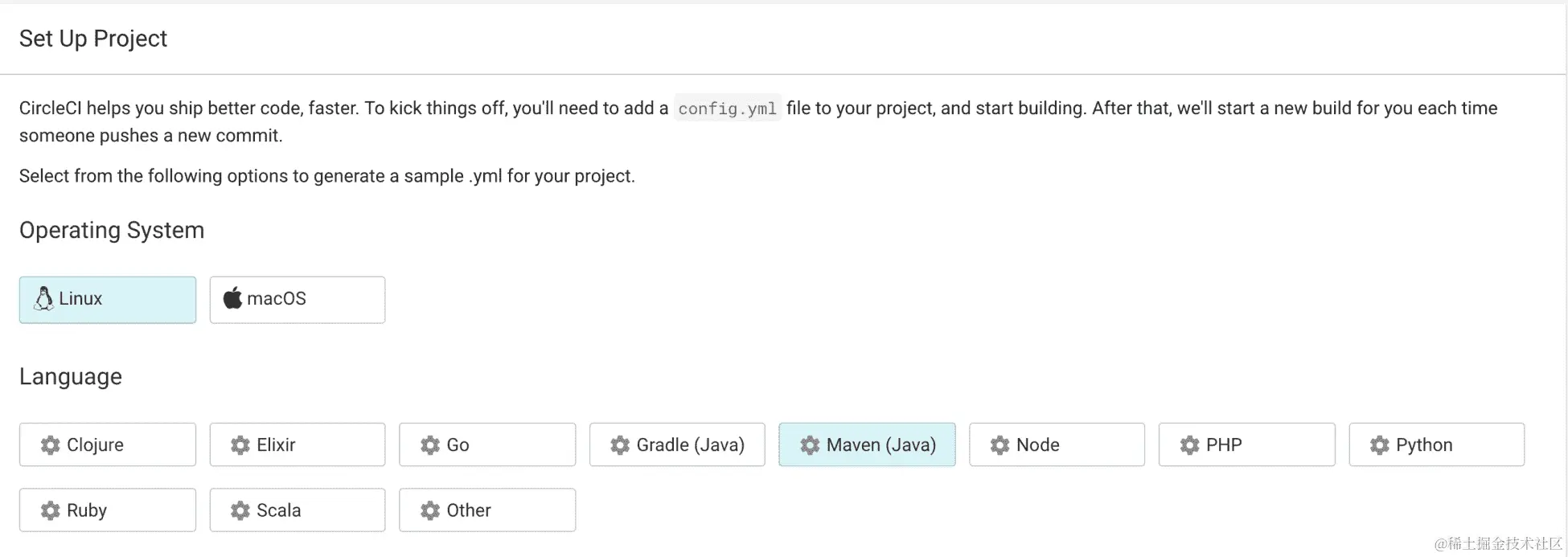 请注意,构建语言设置为go,构建操作系统为 Ubuntu Trusty 14.04:
