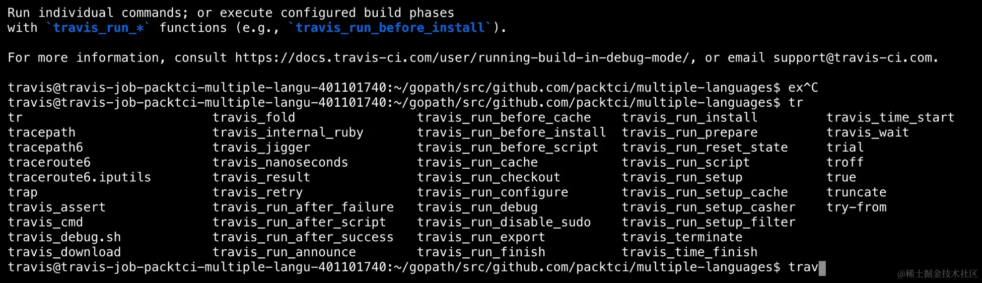 Travis 调试模式便利 Bash 函数