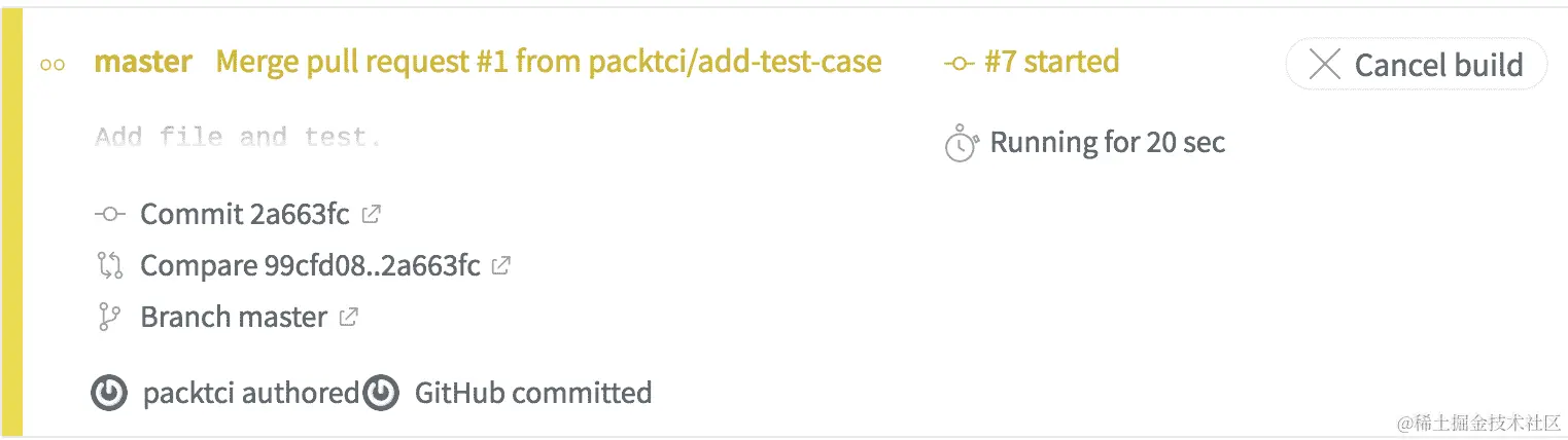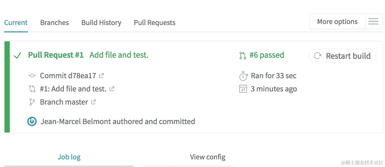 当您将拉取请求合并到另一个分支时,Travis CI 会触发另一个 CI 构建。
