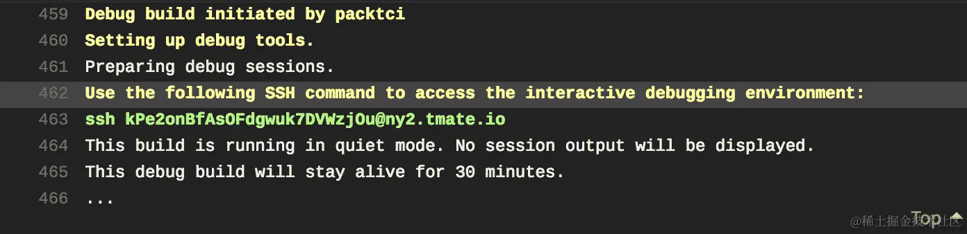 另一种调试构建时间问题的技术是在 Travis CI 中运行调试构建。您需要发送电子邮件至support@travis-ci.com,以为公共存储库切换此功能,而私有存储库默认启用调试模式。原因是任何人都可以遇到包含 SSH 访问的日志,然后可以连接到虚拟机,然后可能读取秘密环境信息,例如客户端 ID、密码等。