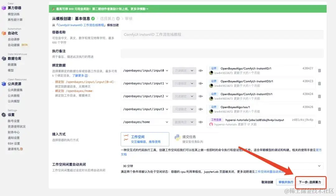 - 点击右下角「下一步:选择算力」。