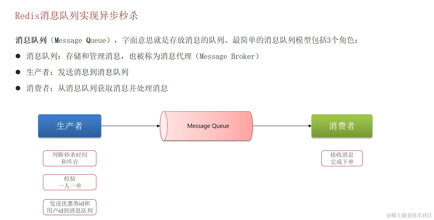 先利用Redis完成库存余量、一人一单判断,完成抢单业务 再将下单业务放入阻塞队列,利用独立线程异步下单