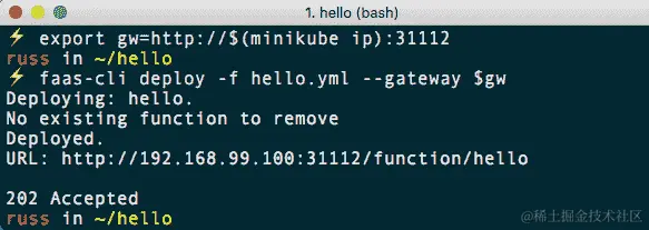 $ faas-cli deploy -f hello.yml --gateway $gw