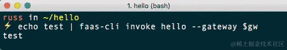 $ echo test | faas-cli invoke hello --gateway $gw
