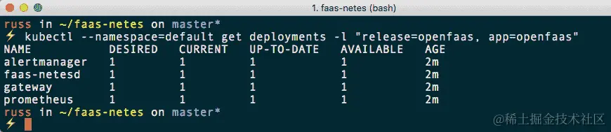 $ kubectl --namespace=default get deployments -l "release=openfaas, app=openfaas"