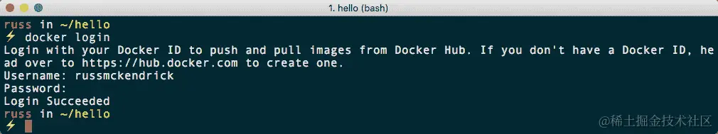 接下来,我们需要登录到 Docker Hub 帐户。要做到这一点,请运行以下命令: