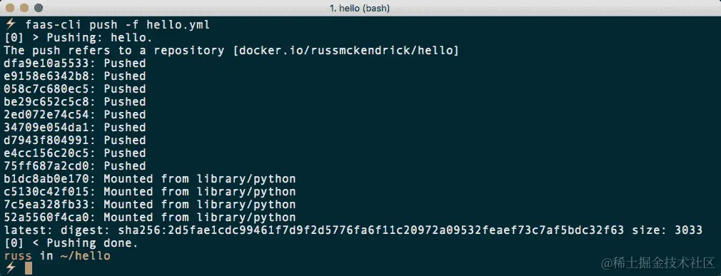 $ faas-cli push -f hello.yml