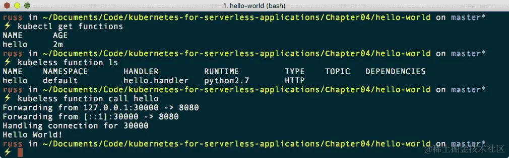 现在我们的 Funktion 部署已经运行起来了,我们可以看一下部署一个非常简单的 hello world 示例。在支持本书的 GitHub 存储库中的/Chapter05/hello-world/src文件夹中,您会找到一个名为hello.js的文件。这个文件包含以下代码: