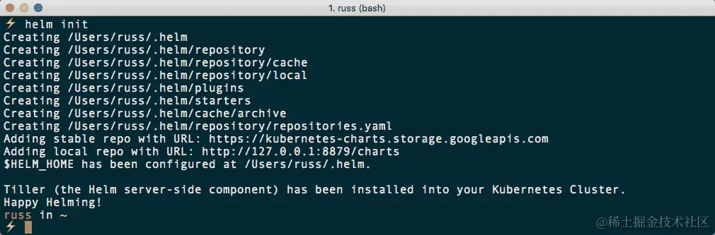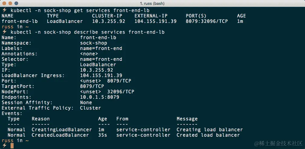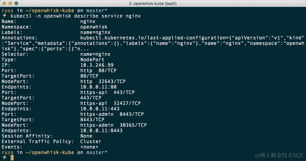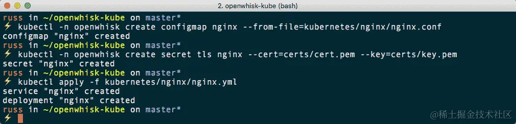 你应该几乎实时地看到这种情况发生,你可能还会看到有关在默认命名空间内启动其他服务的消息。