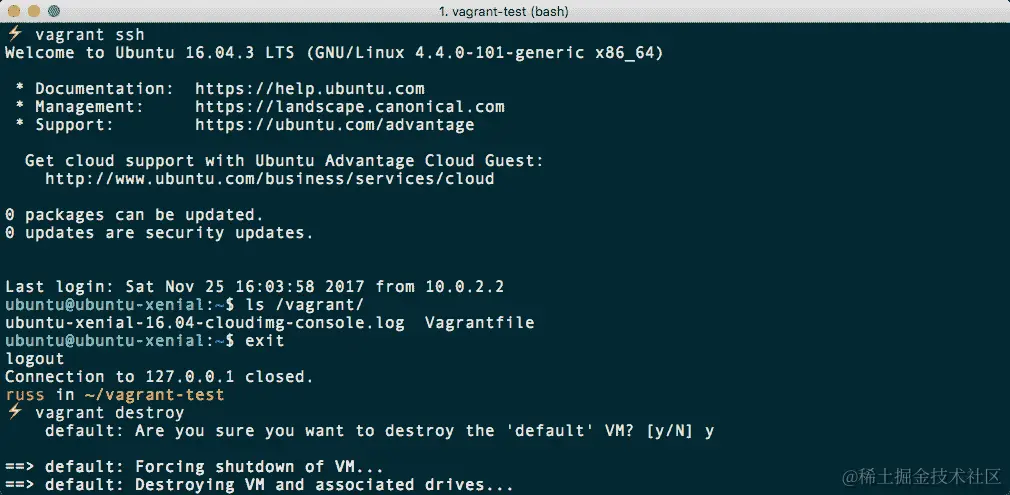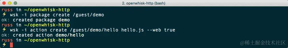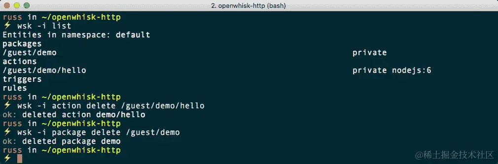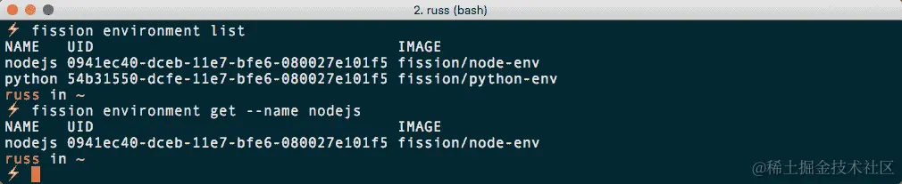如果你已经在终端输出中看到了我们最初为 hello world 示例创建并运行的环境,那么第一个命令可能会导致错误: